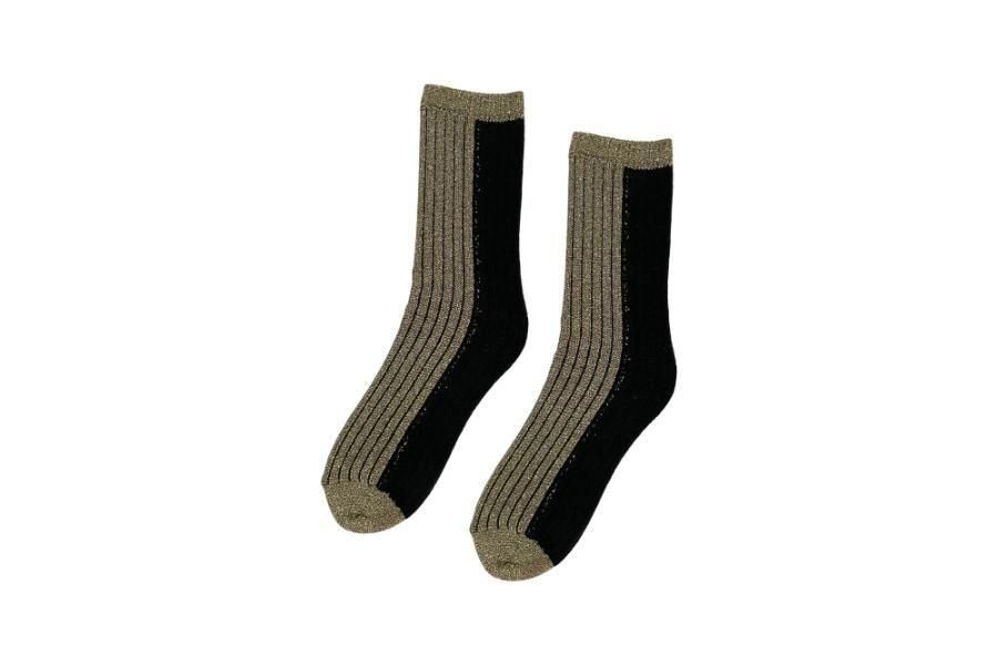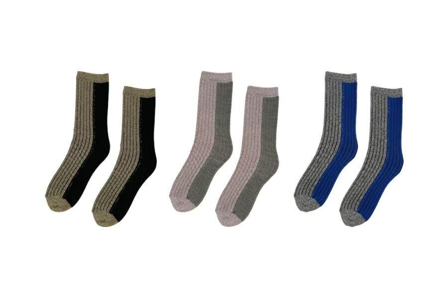 前後で見た感じが違うのがおもしろそうだなと思い、色違いで購入しました。生地の都合上なのか、かかと部分が割とストレートでかかとを強調してなくて、履くとそれがうまく作用しててくしゅっと感が出るのでかわいいです。ゴム部も痛くないです。気になっていたラメ部分ですが、多少抜け落ちるものの最小限に抑えられてると思います(生地がいいんだと思います) サイドにラメ部と普通部の切り替えで細いラインが入っているのですが、洗濯するとそこから裏のラメの残り糸が出てきて、またそれがいいアクセントになります。長く履けそうですし、似たようなのがあればまた買いたいと思います