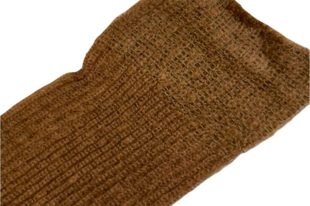 ベージュの起毛モヘア生地を使用したニーハイソックス。クシュっとルーズに履いても◎日本製
