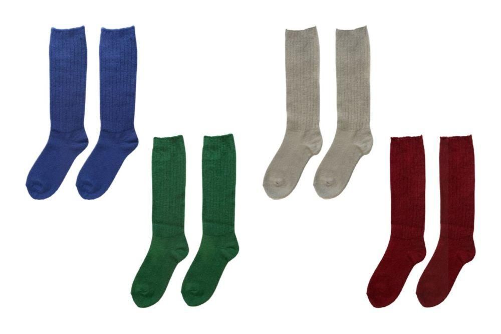 グリーンの起毛モヘア生地を使用したルーズソックス。日本製