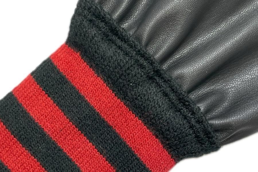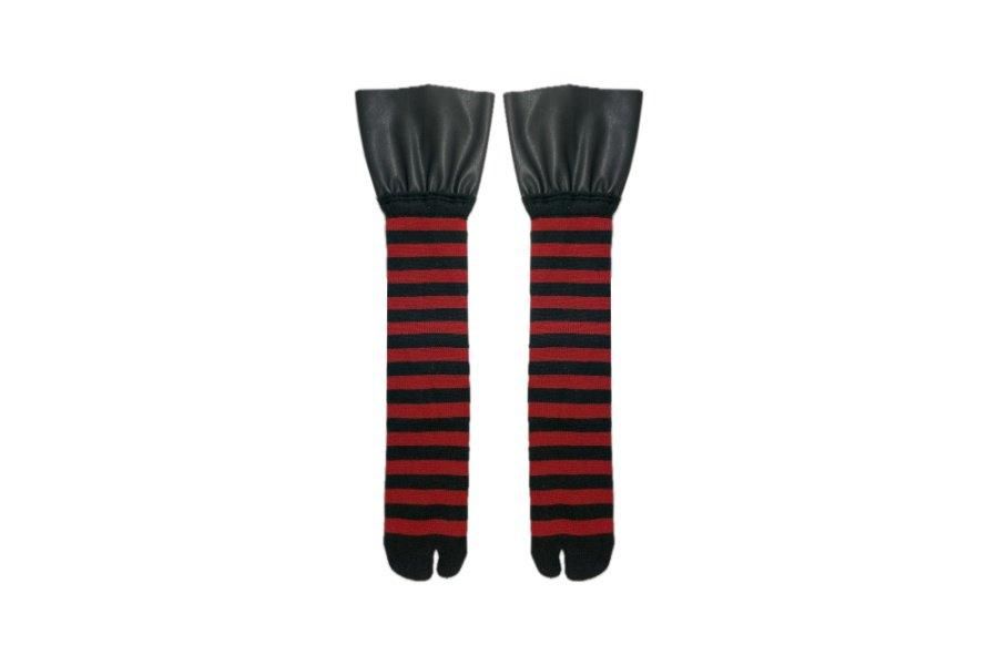 ボーダー足袋ソックスにレザーフリルが付いたソックス。長さもあるのでたるませて履くことも可能。
