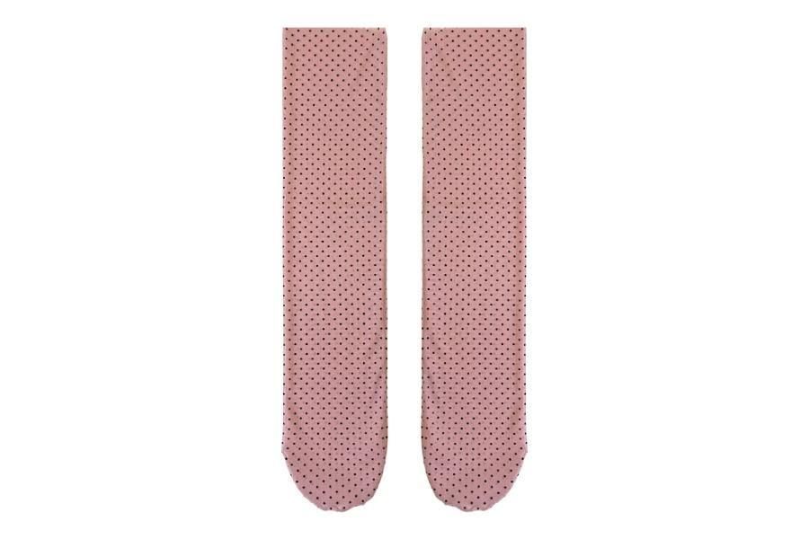 フロッキードットのチュールを使用したロングチュールソックス。ゆるくたるませてトレンド感を楽しんでください。
