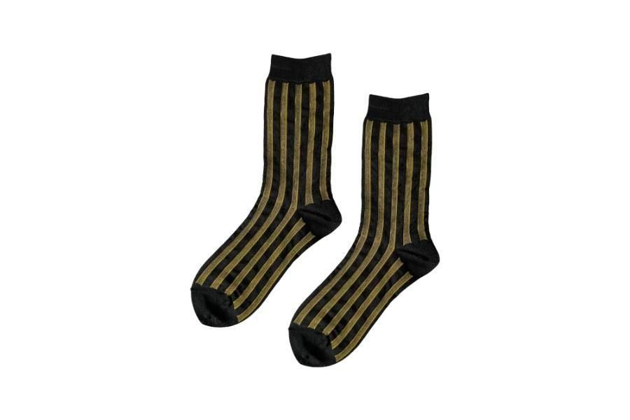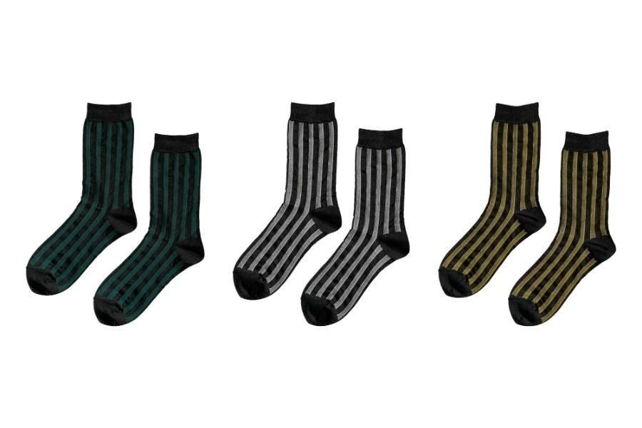 印象的なストライプ柄が足元をスタイリッシュに引き立てるソックス。